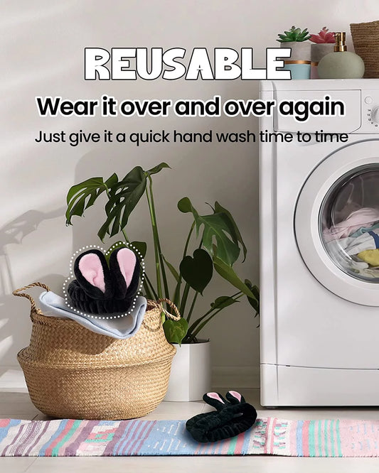 • CHASIN’ RABBITS Spa Headband for Washing Face – Black Rabbit | Skincare Headbands Makeup Headband for Washing Face | Black Headband Hair Styling Accessories Face Wash Headband (8.26" X 5.5")