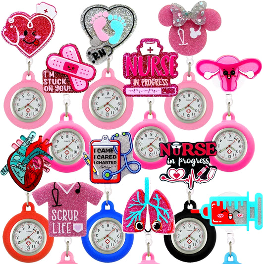 • Cartoon Shiny Plastic PVC Nurse Doctor Badge Reel Retractable Hospital Medical FOB Pocket Watches Clip Hang Clock Gifts