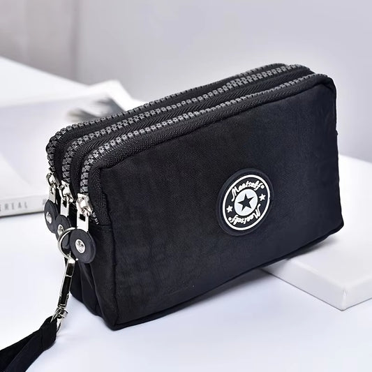 Three-Layer Zipper Short Mobile Phone Bag Fashion Hand Makeup WOMEN'S Bag Portable Change Waterproof Multi-Layer Pocket Bag